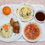 - 12月おたのしみ給食今月のおたのしみ給食はクリスマスピラフです。リースの形になっていて可愛かったね☆