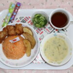 - 8月のおたのしみ給食8月のお誕生会のメニューは、キラキラカレーです!星型が可愛かったね!