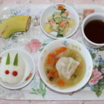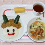 - おたのしみ給食雪うさぎのおにぎりです!とても可愛いく、美味しかったよ!