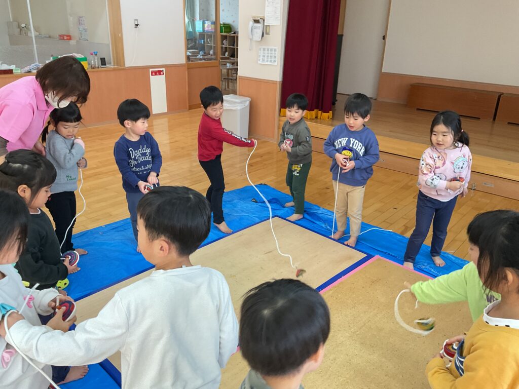 それぞれのクラスでかるたあそびやコマ回しなどお正月ならではの遊びを楽しんだよ♪