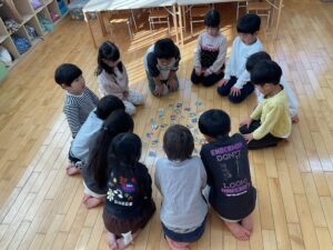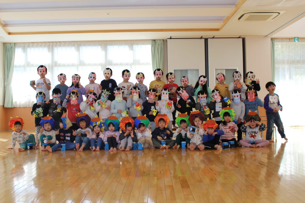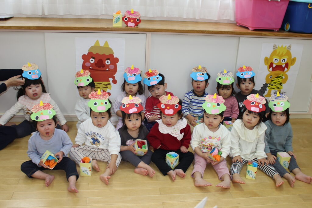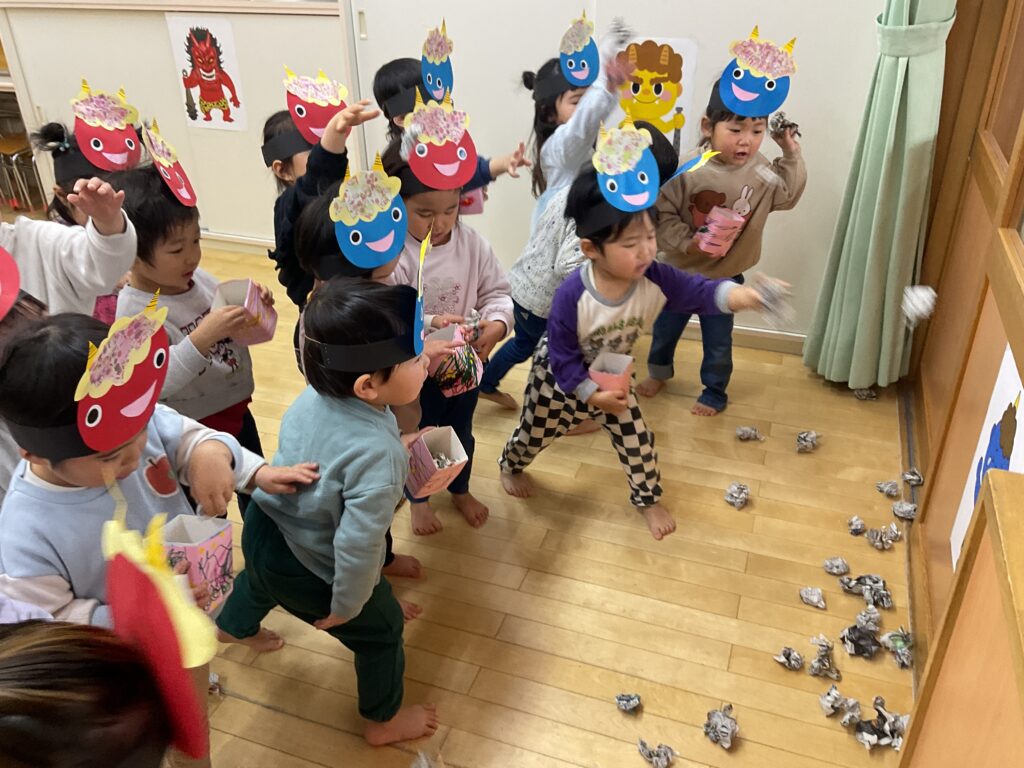 自分の中の泣き虫鬼や怒りんぼ鬼を、お花紙や新聞紙で作った豆でやっつけました!